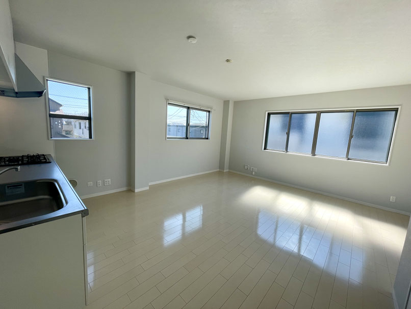 3面に窓があるので自然光がたっぷり入り、風通し良好な広~いお部屋です。