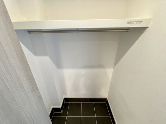 その隣には洗濯機置場とハンガーラック付きの棚が準備されています。