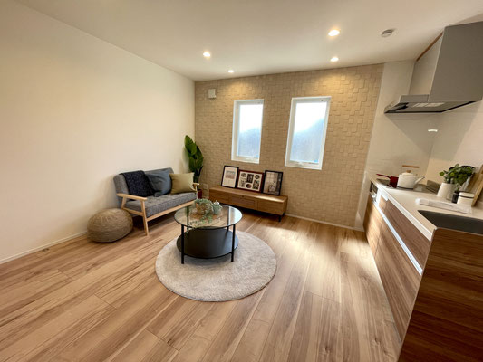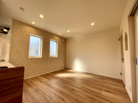 小上がりの先には2階に通じる階段があり、扉を開けると8.2帖のLDKです。