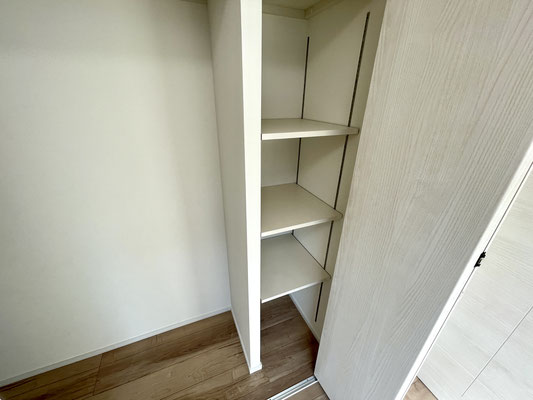 ここにも扉付きの収納があるので、タオルやトイレットペーパーの買い置き、洗剤の買い置きなど
