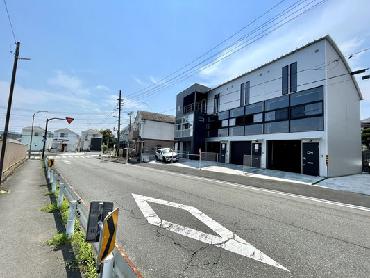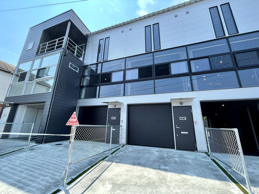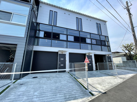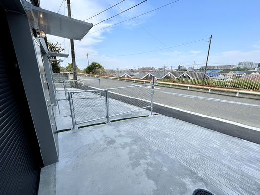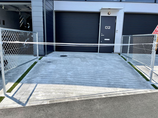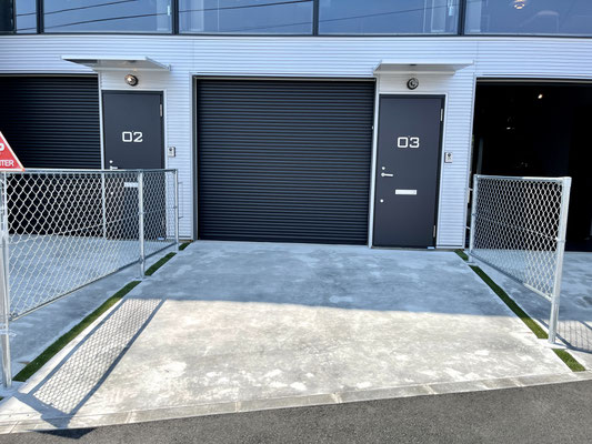 シャッター前も専有スペースになっていて、お隣さんとはアメリカンな雰囲気のフェンスで仕切られています。