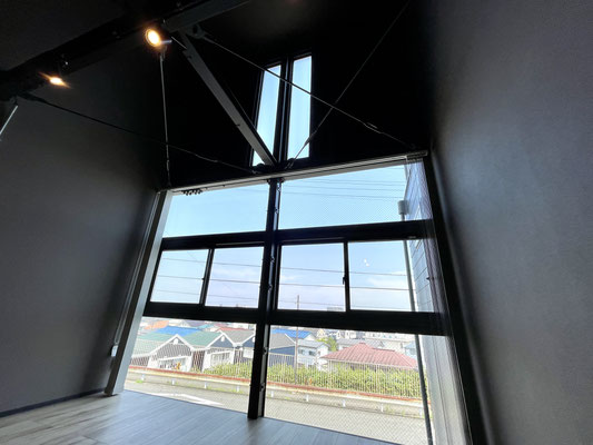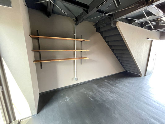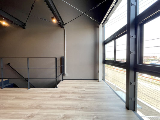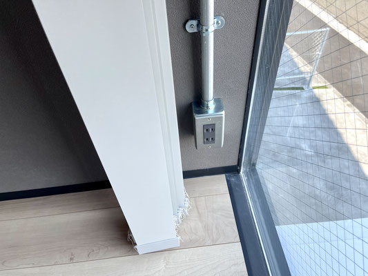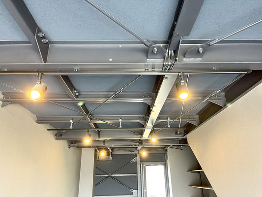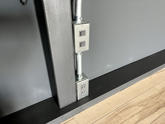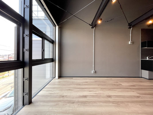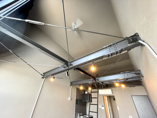 お部屋の各所にある電源や天井の鉄骨、ブレースがインダストリアルな雰囲気♪