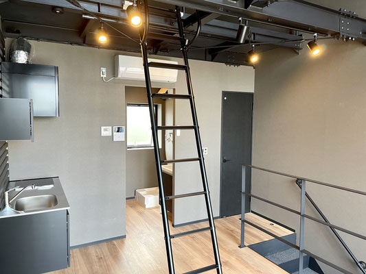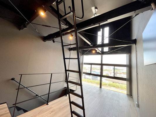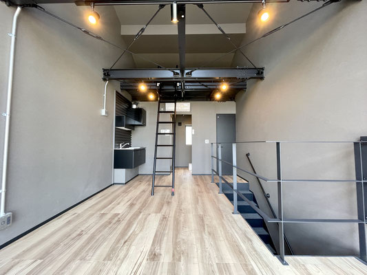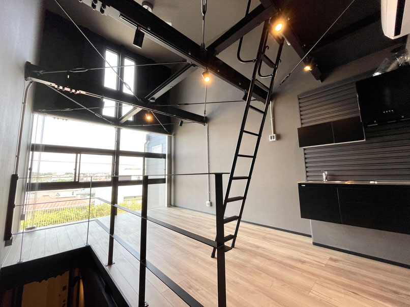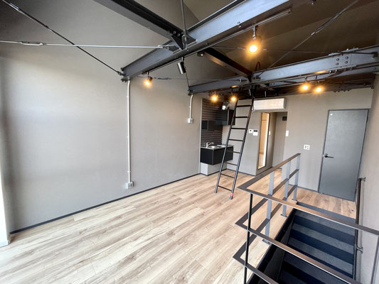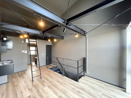 ロフトからは鉄骨越しに下のお部屋を見下ろすことも出来ます♪