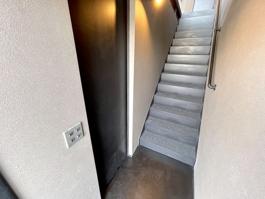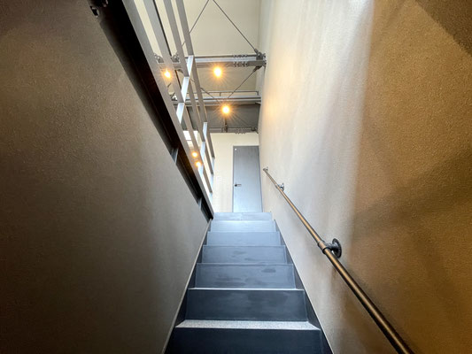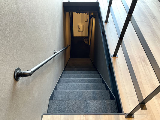 階段はスチール製ですがグレーのカーペットで優しい歩き心地。