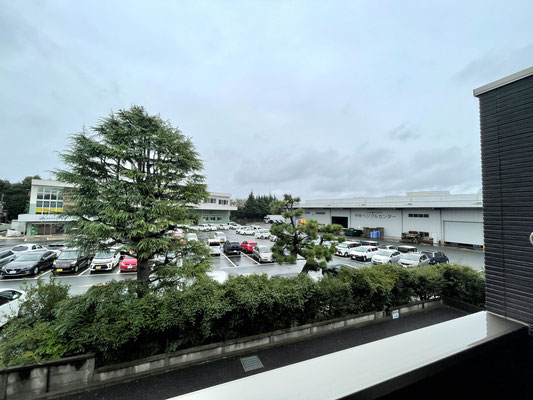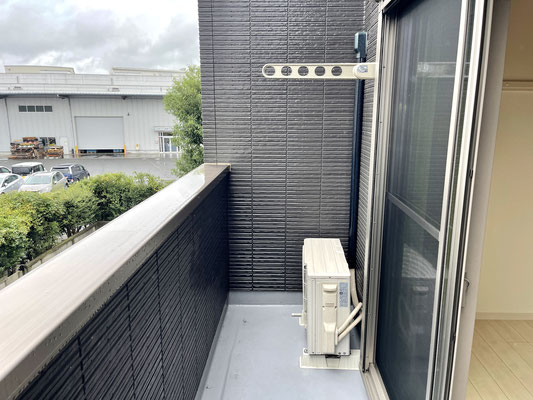 お隣の敷地は大きな配送センターの駐車場なので遮るものが無く開放感のあるベランダ♪