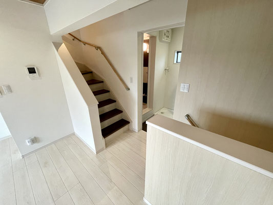 玄関ホールも爽やかなウッド調の壁紙クロスがいい雰囲気♪