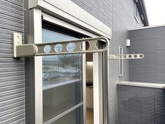 窓付近には洗濯物干しがあり、シャッター雨戸も付いた窓です。