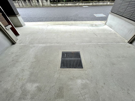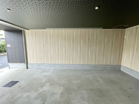 建物から少し奥まった場所にシャッターがあり、玄関前の軒も大きめ!