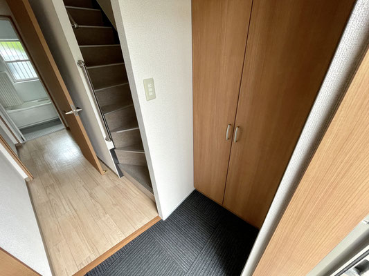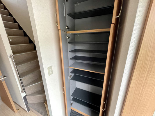 玄関ドアを開けて中に入るとすぐ右手には大きな下駄箱収納があります。