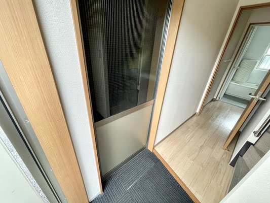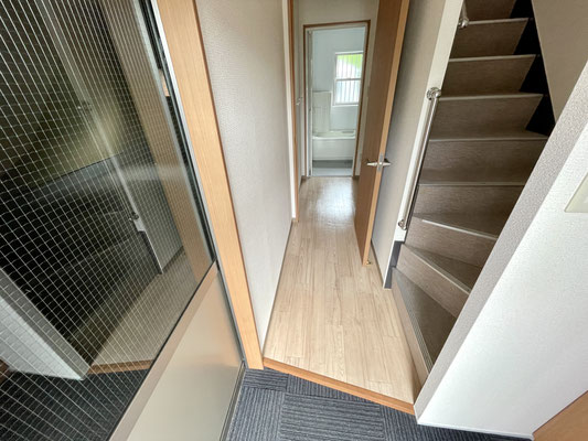 玄関ホールの先には洗濯機置き場のある脱衣所があります。