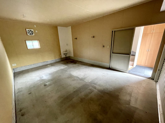 剥き出しの石膏ボードがワイルドなガレージ!!