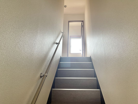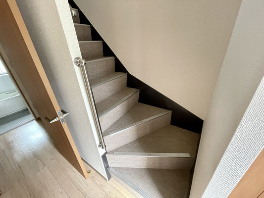 カーペット張りの階段は冬場でも暖かそうだし、グリップもきいて滑りにくいのが良いね♪
