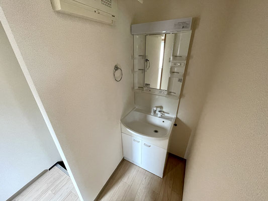 2階の踊り場には洗面台があります。