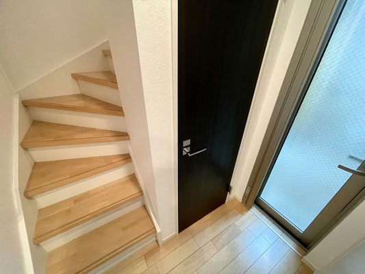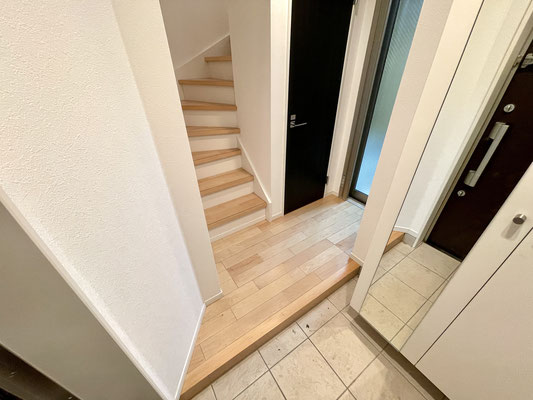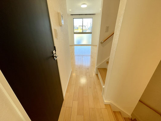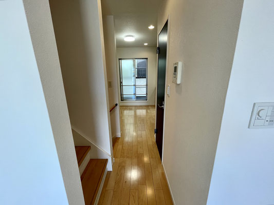階段がある短い廊下を上手に工夫して空間分けされていますね〜