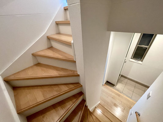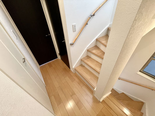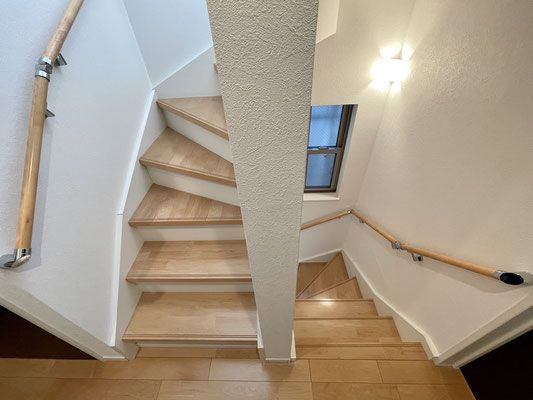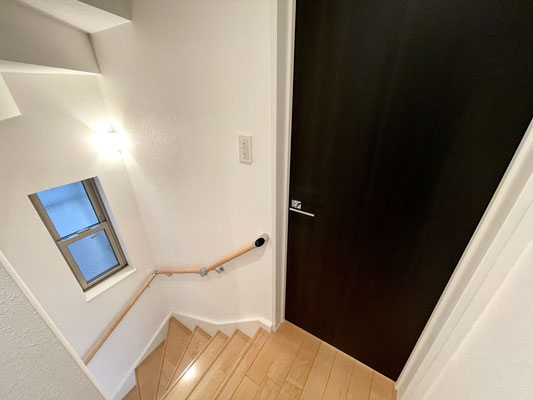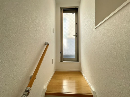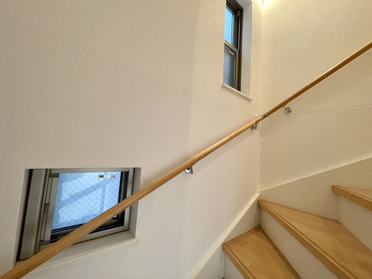 階段には開閉可能な小窓があり明るい雰囲気の階段です。