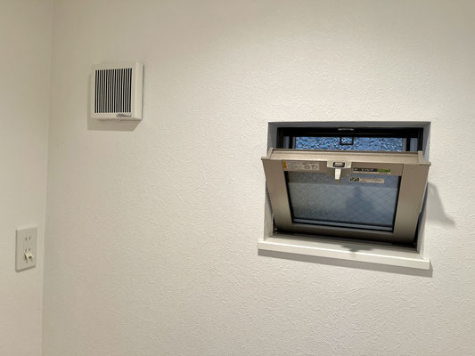 開閉可能な小窓、大きな収納棚、換気扇なんかも完備!