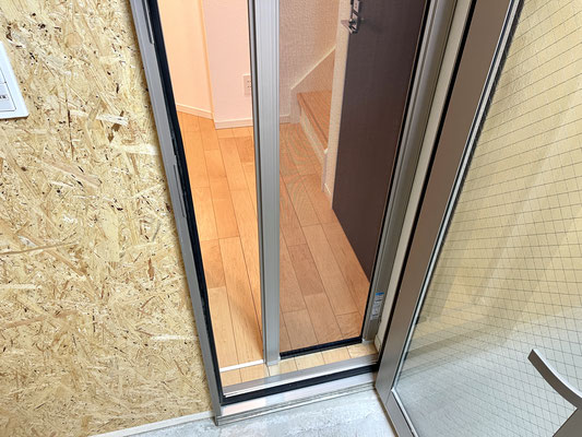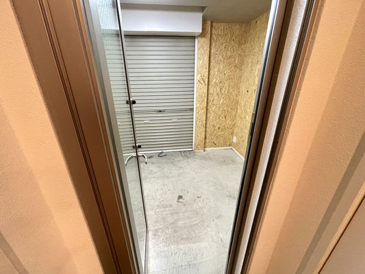 ガレージ内には居室にアプローチ出来る網戸付きのドア、
