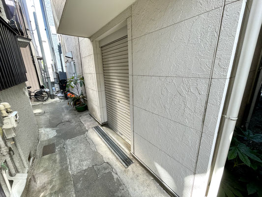 ペンシルハウスでありながらしっかりとシャッター付きのバイクガレージがある物件です。