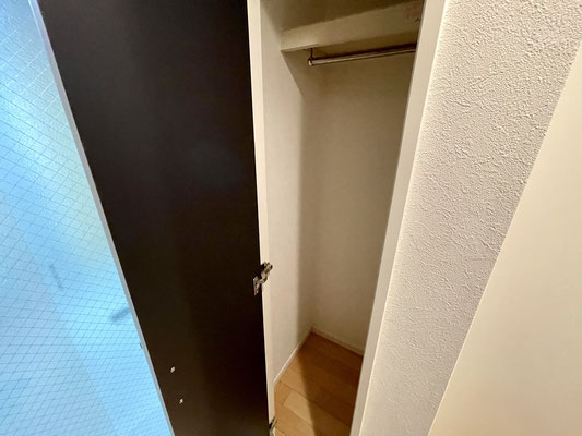 扉のすぐ内側には収納だってあるからバイク用のジャケットを掛けておいても良いね♪