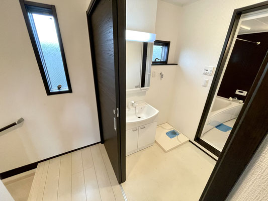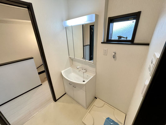 2階に上がってスライドドアを開けると、そこは洗面台のある脱衣所〜