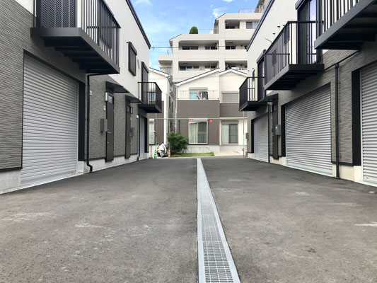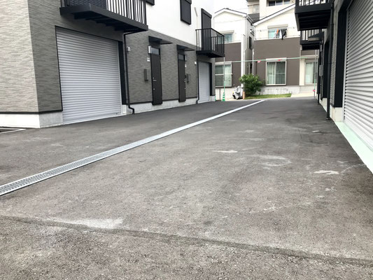 中央のグレーチングは洗車をしても水捌けが良いように設置されています。