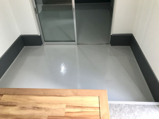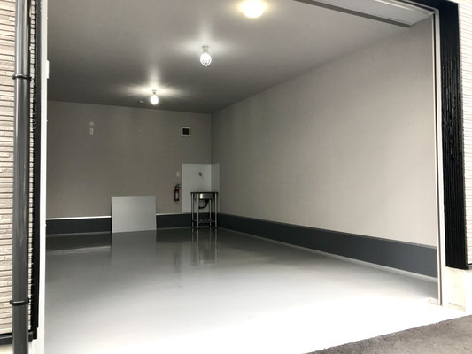 ガレージの床は工場などで使われている物と同じ塗料でペイントしてあります。