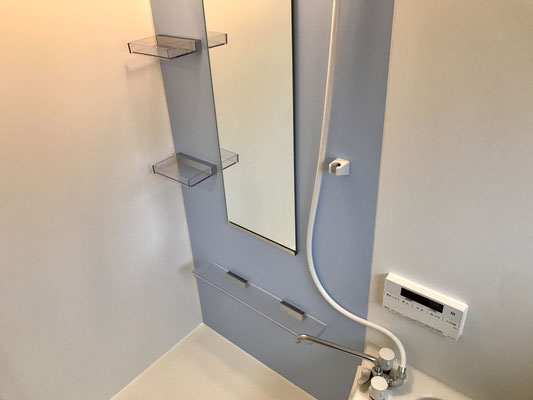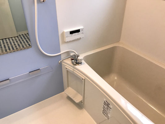 追い焚き機能付きの浴室は薄いブルーで爽やか♪