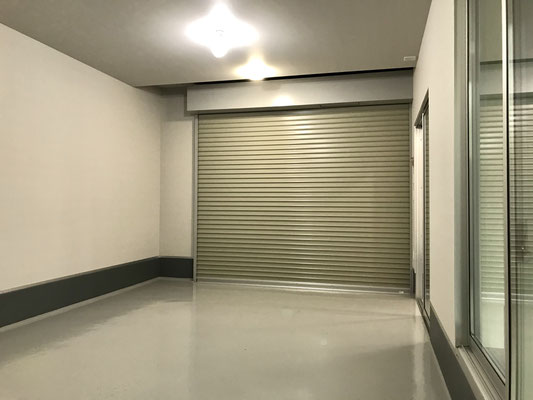 照明は手前のシャッター側にセンサー付きの照明器具があり、