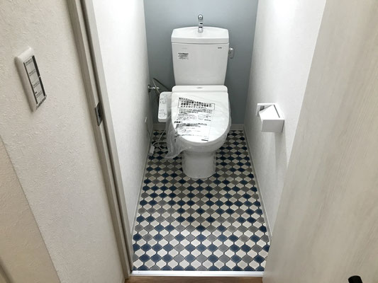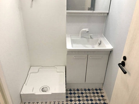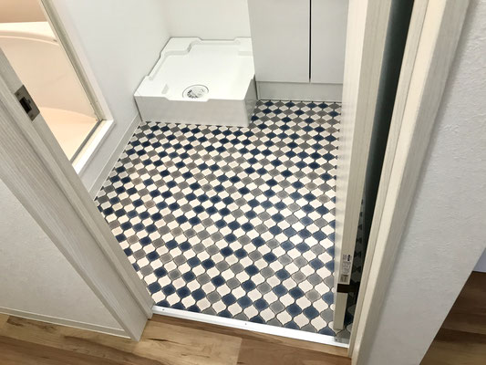 ココもモロカンタイル調&薄いブルーでバスルームと同じテイストなので統一感があって良いですね〜
