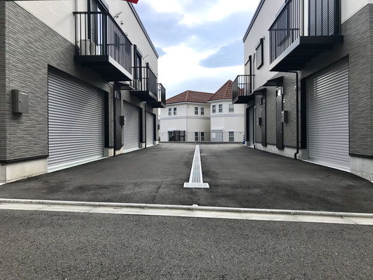 ガレージへのアプローチも広々していて、段差もほぼフラット。