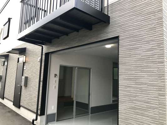 シャッターの上に設置されているバルコニーは庇の役割を担ってくれます。