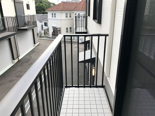 バルコニーは小さめなサイズだけど手すり部分が柵になっていて、