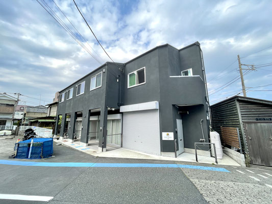 建物外観は黒系のペイントがされた外壁がモダンな外観。