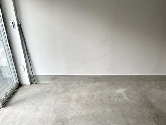 出入り口に近い場所だけ見るとシンプルなコンクリート土間仕上げのガレージですが、