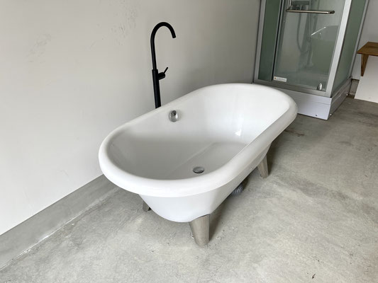 なんと土間のある1階のガレージ内にはバスタブがあります。
