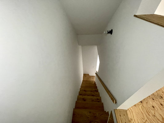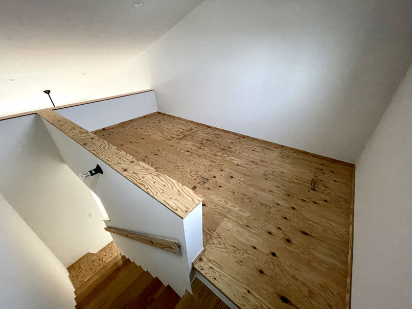 階段の手すり部分も床材と同じく木のぬくもりを感じるね〜