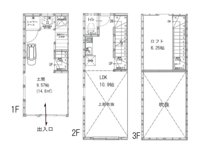 縦に長いお部屋だから出入り口付近はガレージとして使って、奥側を生活空間として分けられますね〜