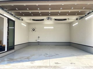 ガレージ内にはシャワーヘッドの水栓や、洗車に便利なシャッター付近の水栓、