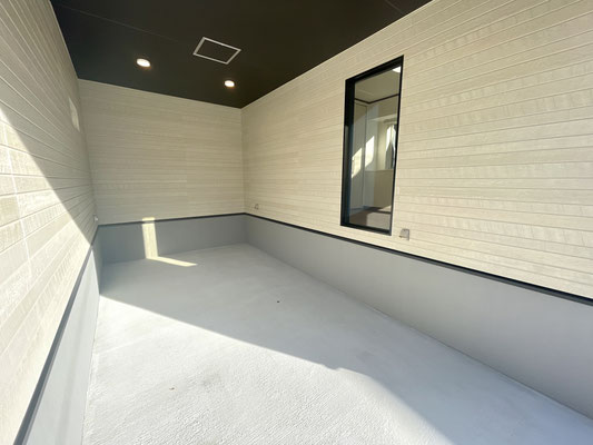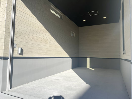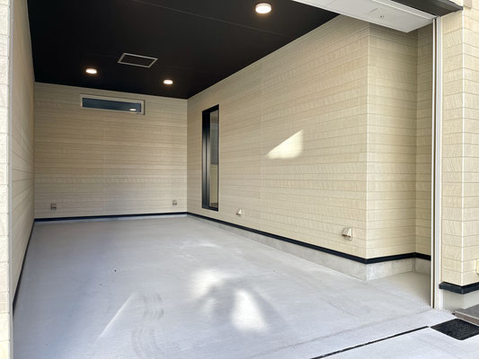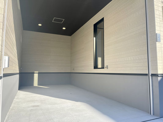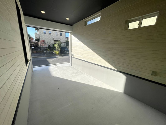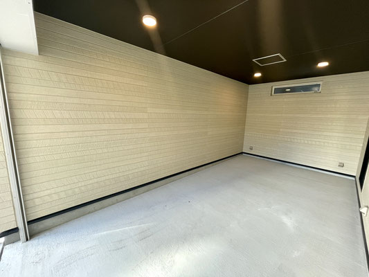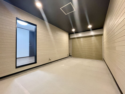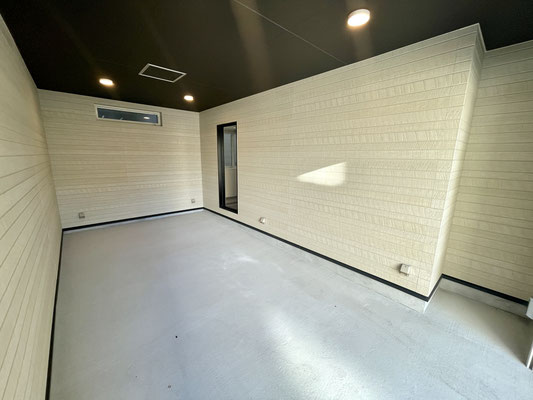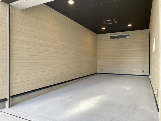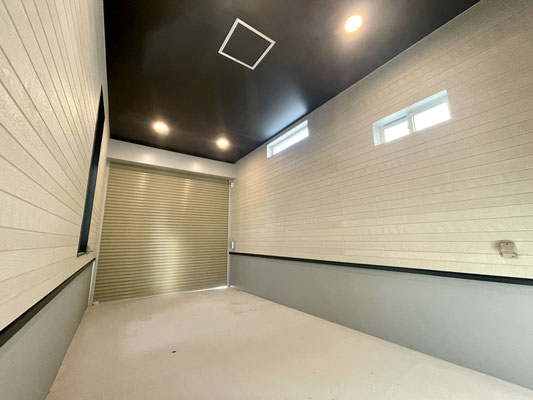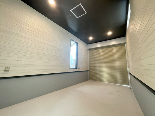 スッキリシンプルな天井高ガレージです。