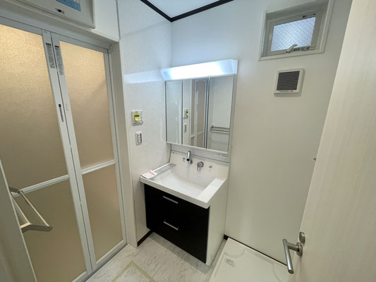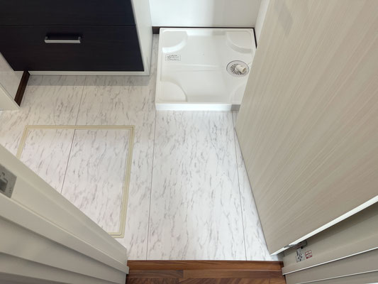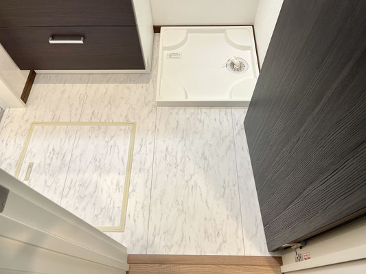 玄関ホール左の扉を開けると水まわりスペースがあります。