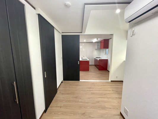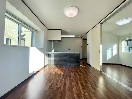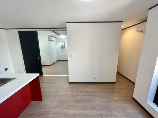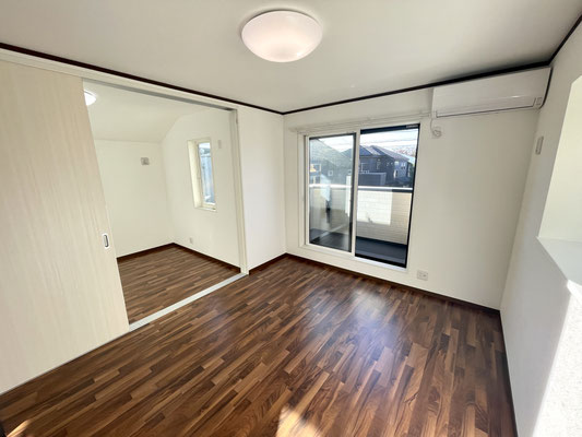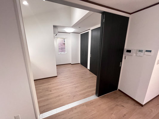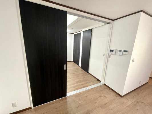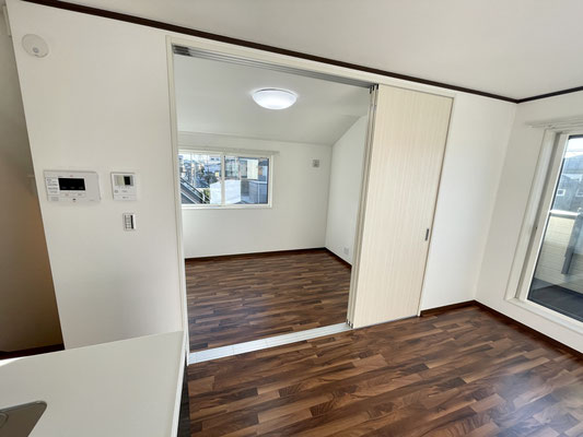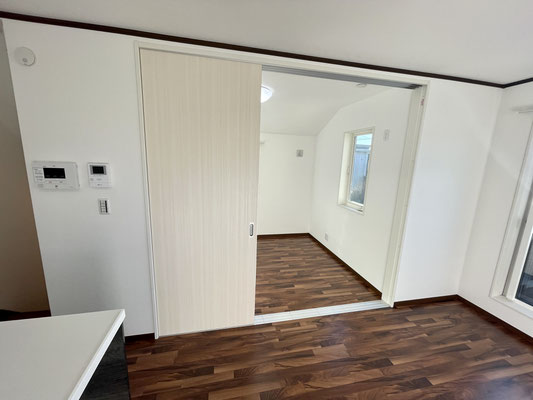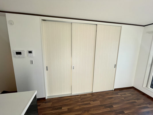 リビングの隣のお部屋とは3枚のスライドドアで仕切られています。