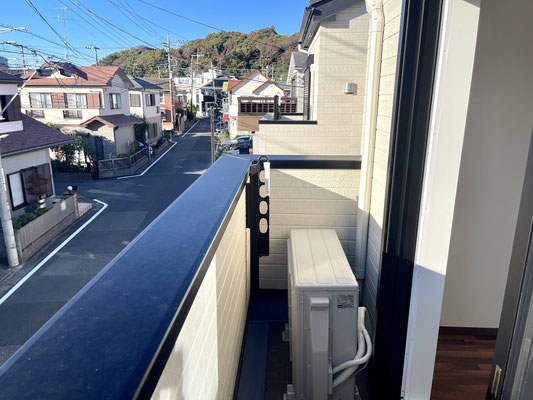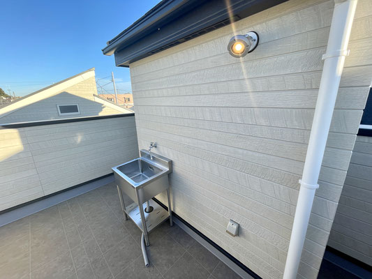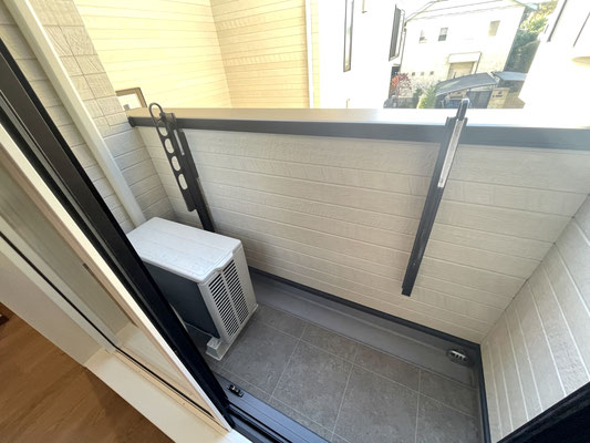 バルコニーには洗濯物干しシンク付き水栓、家庭用電源もありますよ〜