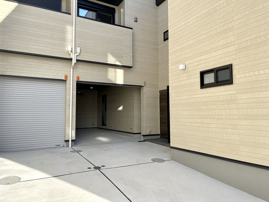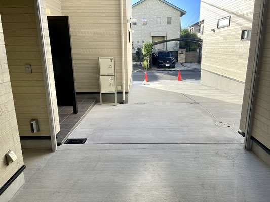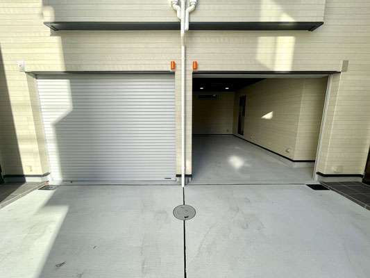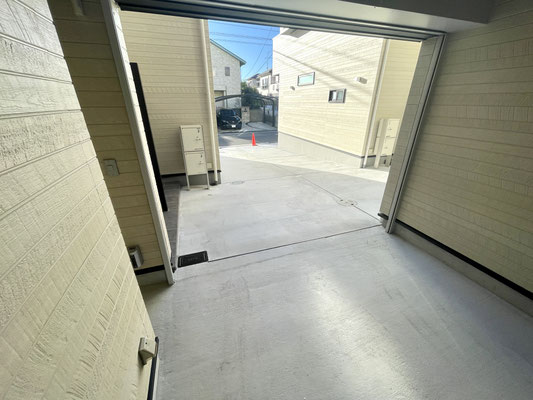 注意点としてはこちらの「D号室」お隣の「C号室」はガレージ入り口が奥まった所にあります。