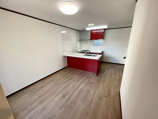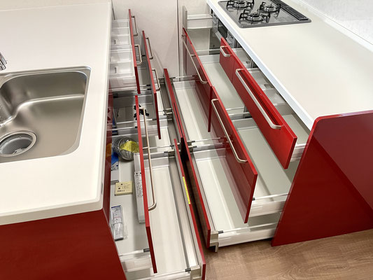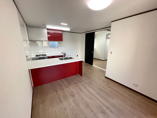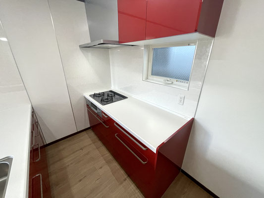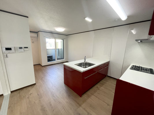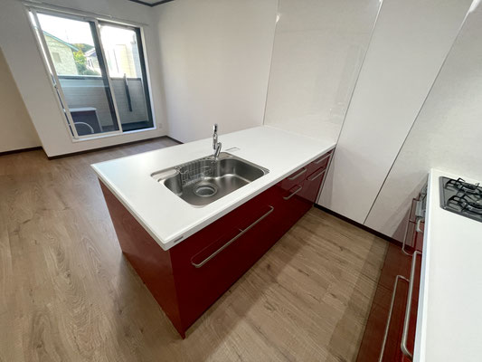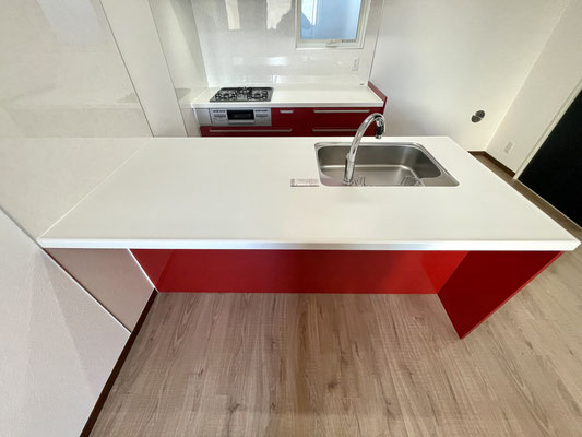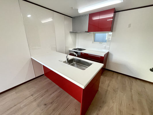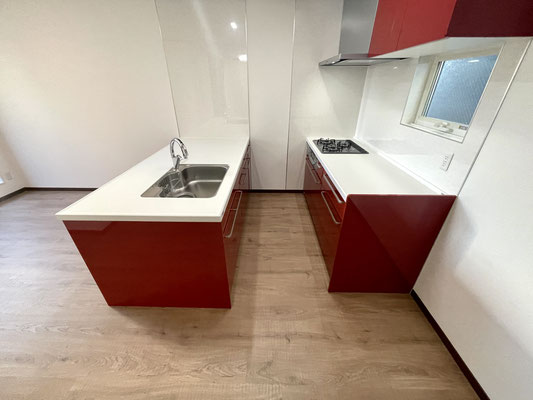 そして何といっても目を引くのは真っ赤な大型キッチン!!