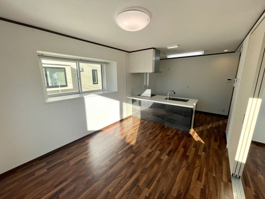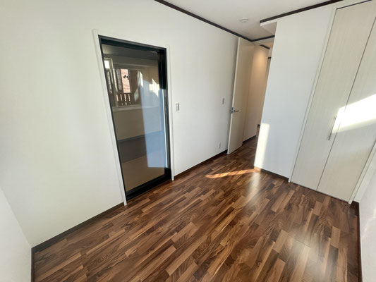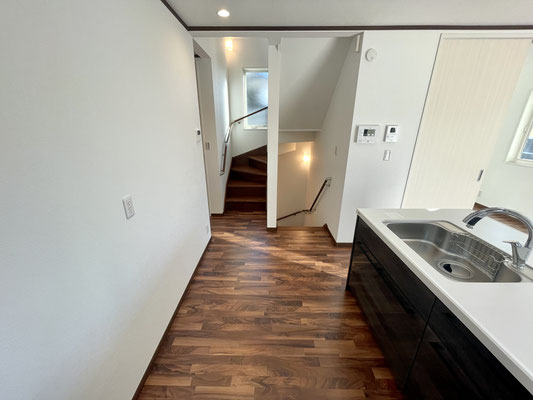 リビング同様の濃いフローリングと白の壁や建具がコントラストになって良いですね〜