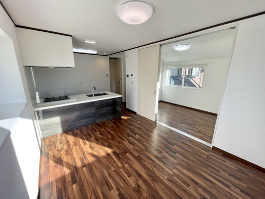 キッチンの隣には3枚のスライドドア。