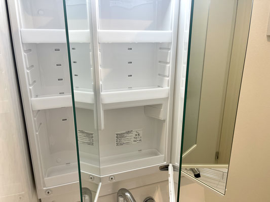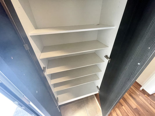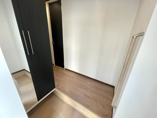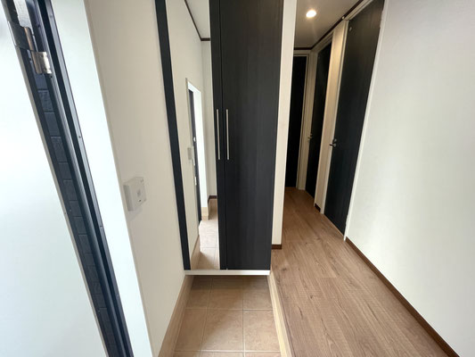 入ってすぐ左手には姿見付きの大きな下駄箱収納があります。
