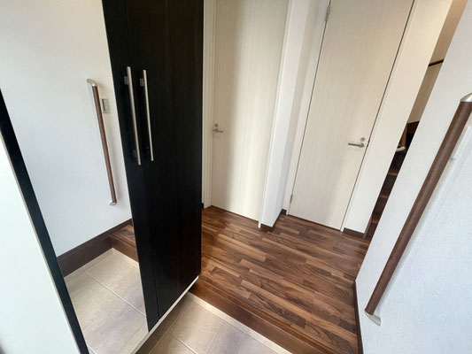 入ってすぐ左手には姿見付きの大きな下駄箱収納。