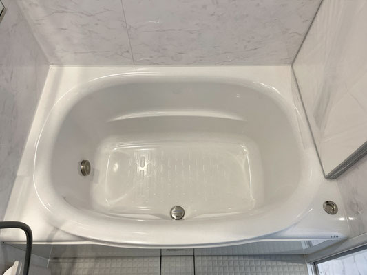 爽やかなホワイトを基調としたバスルームはしっかりとくつろげそうな空間。
