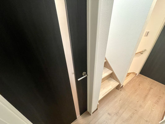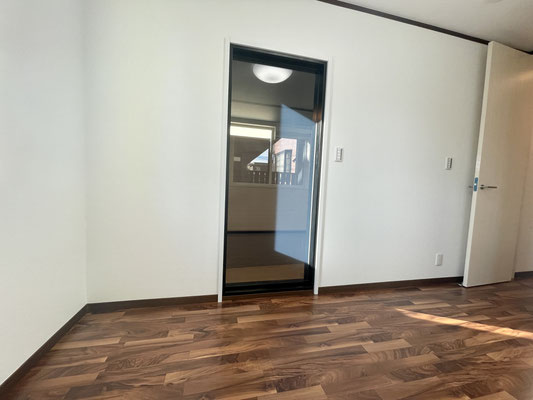 こちらのお部屋の扉は濃いウッド調の物を採用!
